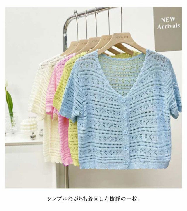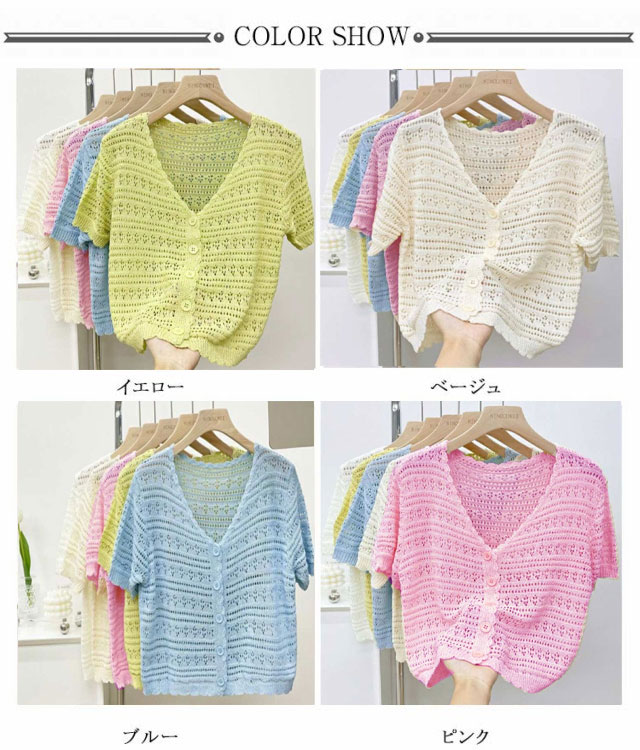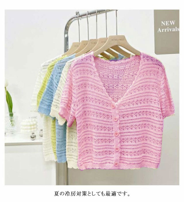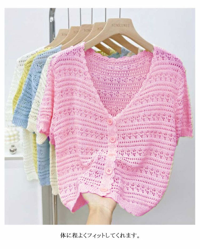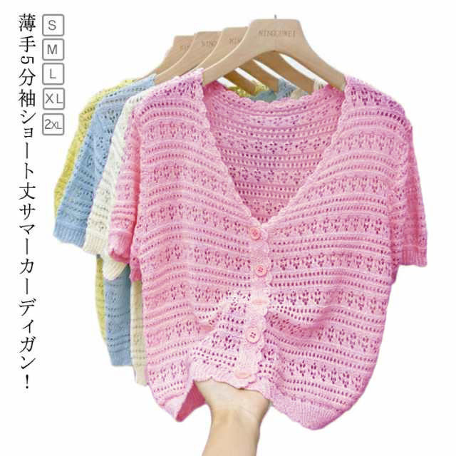サマーニット サマーカーディガン レディース 半袖 カーディガン レディース サマーカーディガン 五分袖 Vネック 無地 薄手 透け感 ショート丈 ショートカーディガン ボタン付き 重ね着 レイヤード 冷房対策 お洒落 カジュアル キレイめ