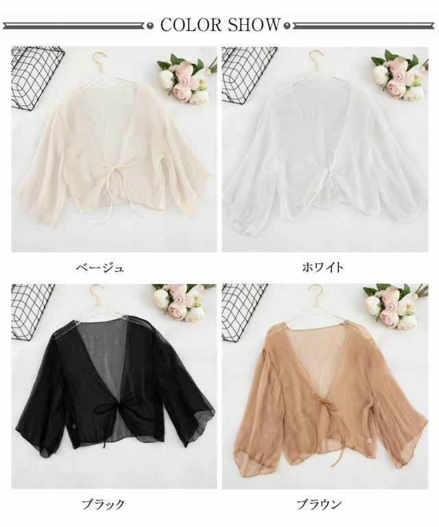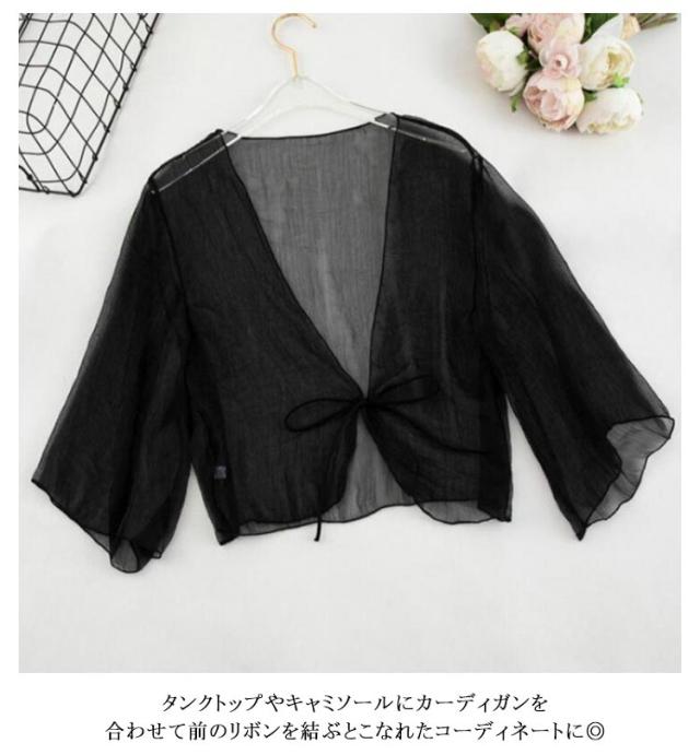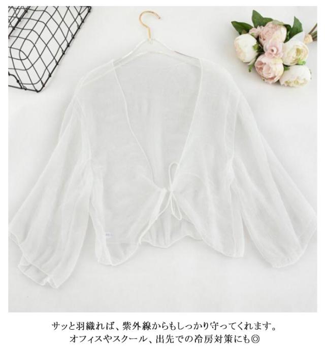 ショート丈 シアーカーディガン 羽織 透け感 シースルー シアーカーディガン ボレロ 涼しい レディース カーディガン 薄手 シフォン 夏 冷房対策 UV対策 サマーカーディガン 春 夏 秋 リボン シンプル 無地 オフィスカジュアル きれいめ