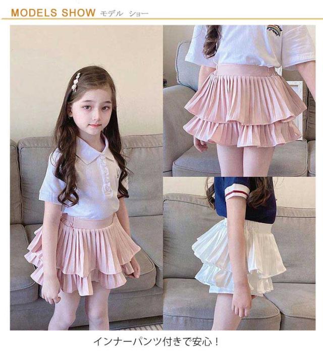 女の子 子供スカート 無地 ブリーツスカート キッズ インナーパンツ付き フレアスカート スカート キッズ フリル ミニスカート 子供服 可愛い フォーマル プリンセス 日常着 卒園式 入学式