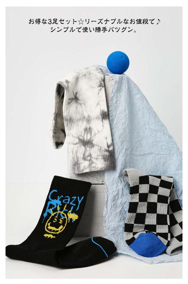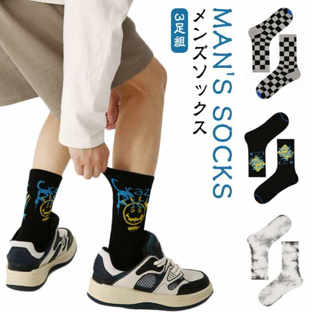 チェック柄 タイダイ 靴下 ミドル丈 メンズ 3足セット ソックス 靴下 蒸れにくい ソックス スニーカーソックス スニーカー 靴下 ミドル丈 スポーツソックス スニーカー 靴下 くつした スポーツ 靴下 春用 夏用 秋用 冬用 男性用 メンズ靴下 メンズソックス 送料無料