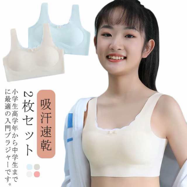 スポーツブラ ジュニア 2枚セット キッズ ノンワイヤー インナー ジュニアブラ 下着 中学生 小学生 女の子 ファーストブラ ブラジャー シームレス ナイトブラ パッド付き 吸汗速乾 ハーフトップ
