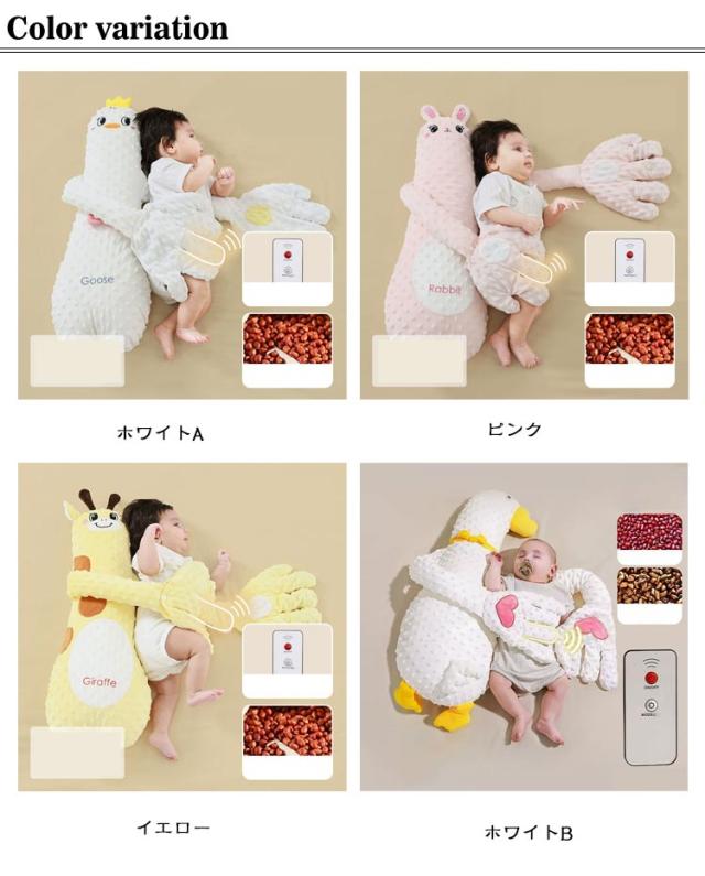 | リモコン付き!ベビー用指が動き寝かしつけ用クッション。小豆充填(加熱可能) 寝かしつけで大切なのは『安心感』!寝ている時に赤ちゃんに手の触るような安心感を与えます。 指が動き!リモコンでぬいぐるみをコントローラーで、ベビーの寝かしつけになってくれます。 抱きしめやすい形と、思わず触りたくなるフワフワな触り心地が赤ちゃんをリラックスさせます。 いつでも清潔に!洗濯機で洗濯可能だからいつでも清潔に保つことができます。 | |