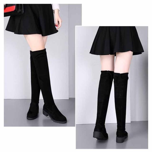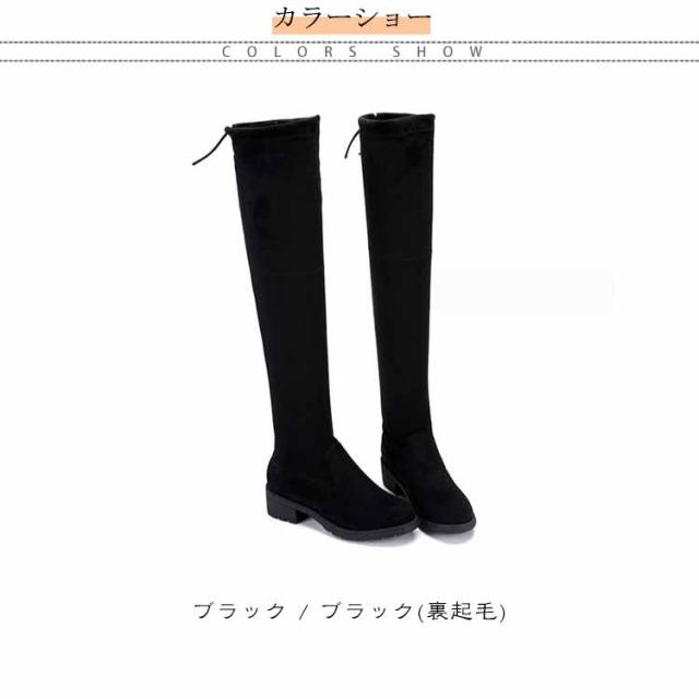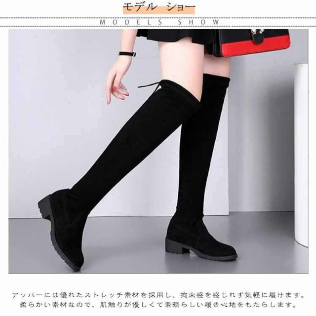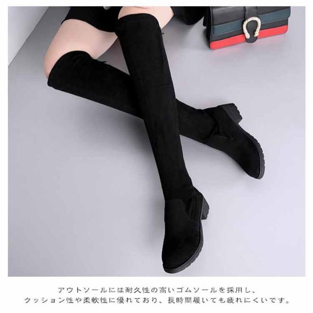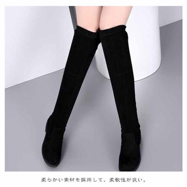 ロングブーツ レディース チャンキーヒールニーハイブーツ ロング ローヒール ニーハイブーツ レディース スエード ロングブーツ 黒 ブラック ブーツ ロング スエード チャンキーヒール 着痩せ 美脚