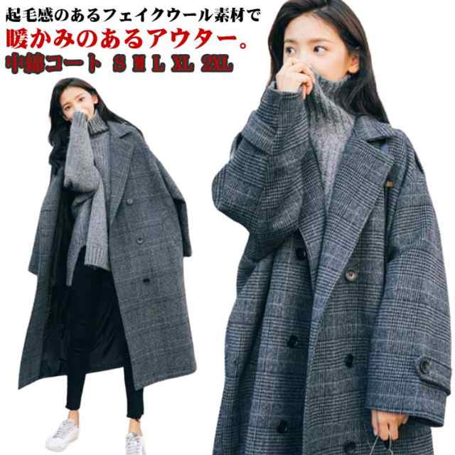 チェック チェスターコート ロング丈 チェスター コート 中綿コート 秋 冬 レディース アウター グレンチェック コート 厚手 裏地 中綿 チェック柄 アウター 無地 暖かい OL 通勤 入園式 卒業式 秋 冬 秋冬 あったか 暖かい