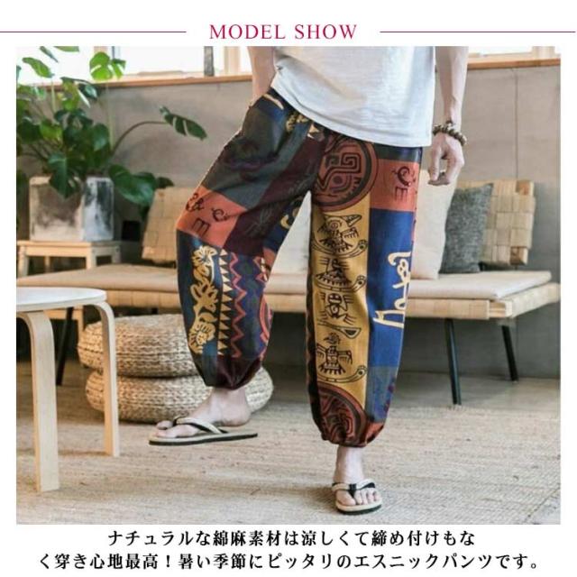 綿麻 ゴムウエスト 綿麻 9分丈 部屋着 薄手 ジョガーパンツ 接触冷感 象柄 ゾウ タイパンツ 象 サルエルパンツ ルームウェア ぞう ワイド ゆったり パンツ イージーパンツ 冷感パンツ 涼しい とろみ 落ち感 春 夏 ズボン おしゃれ カジュアル