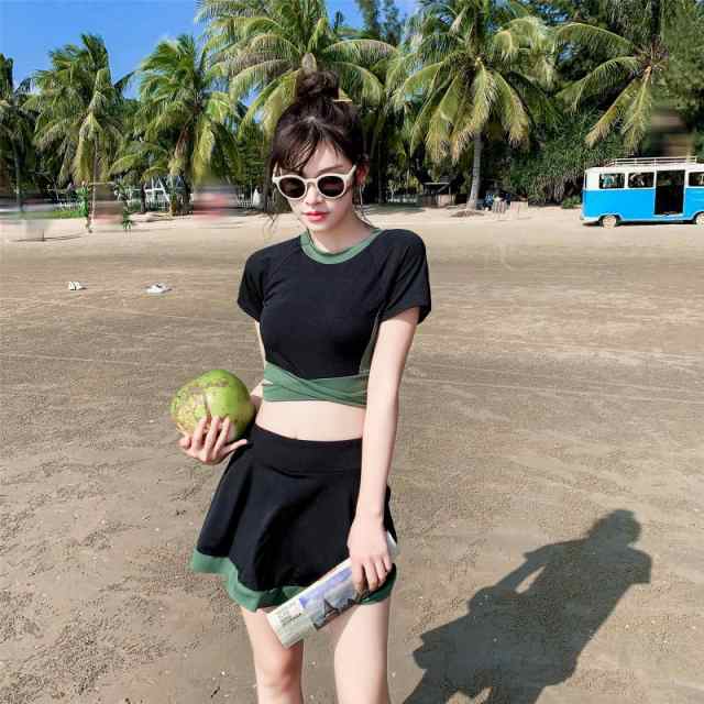 水着 レディース スポーティー 可愛い スイムウェア 半袖シャツ 韓国風 セパレート 高校生 大学生 海水浴 おしゃれ フィットネス水着 ワンピース水着 水着女の子 体型カバー水着