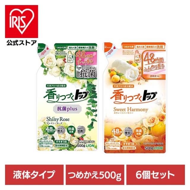 【6個セット】香りつづくトップ つめかえ 01272 01273 LION ライオン 衣料用洗剤 合成洗剤 液体タイプ トップ 抗菌プラス シャイニーローズ スウィートハーモニー 詰め替え 柔軟剤入り 500g 香りつづく