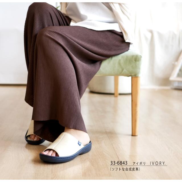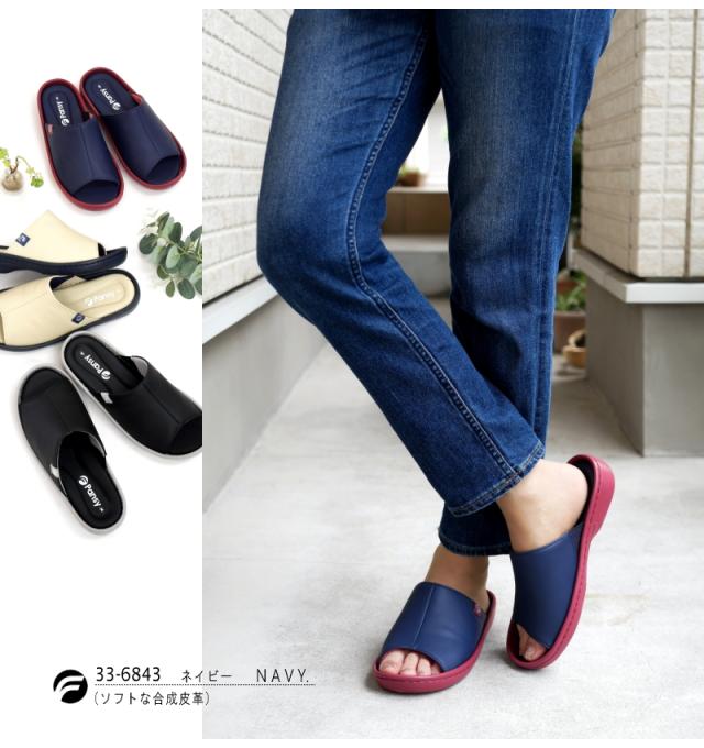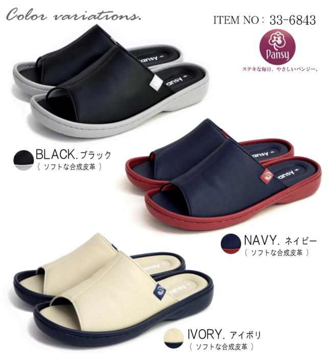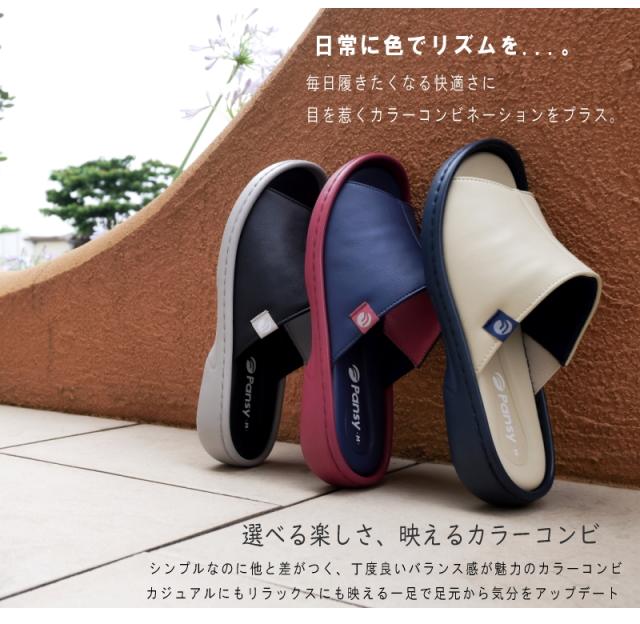 Pansy パンジー サンダル ヘップ つっかけ 超軽量 ソフトクッション フラット オープントゥ カラーコンビ カップイン形状 黒 ネイビー アイボリ 快適 履きやすい オフィス 屈曲 3e
