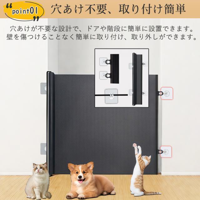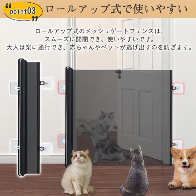 ペットゲート ロール式安全ゲート メッシュ 穴開け不要 伸縮可能 階段用 階段 玄関 台所 扉 ワイド 折りたたみ式 脱走防止ゲート 侵入防止 ペット 猫用 犬用 猫犬 猫犬兼用 脱走防止 ペットフェンス