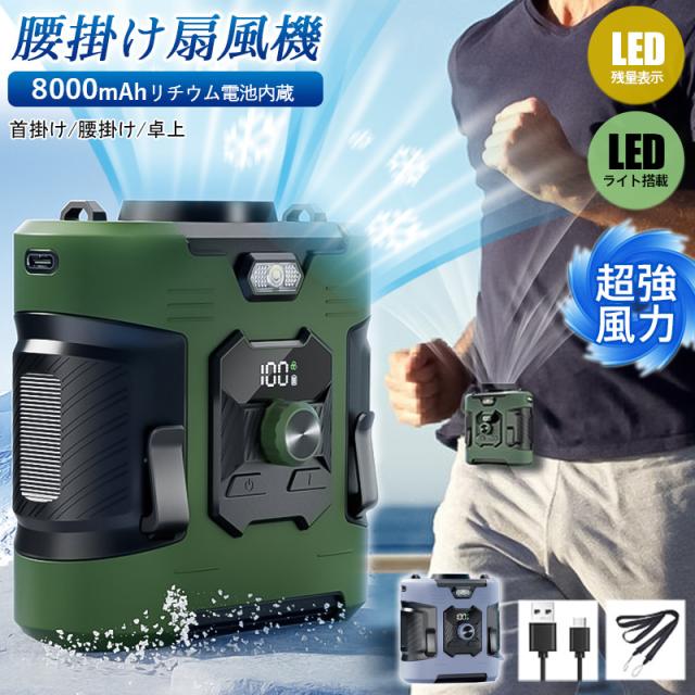 扇風機 腰掛け扇風機 強力 ベルトファン 小型 無段階調節 携帯扇風機 ハンディファン 首かけ 腰かけ LED残量表示 静音 熱中症対策