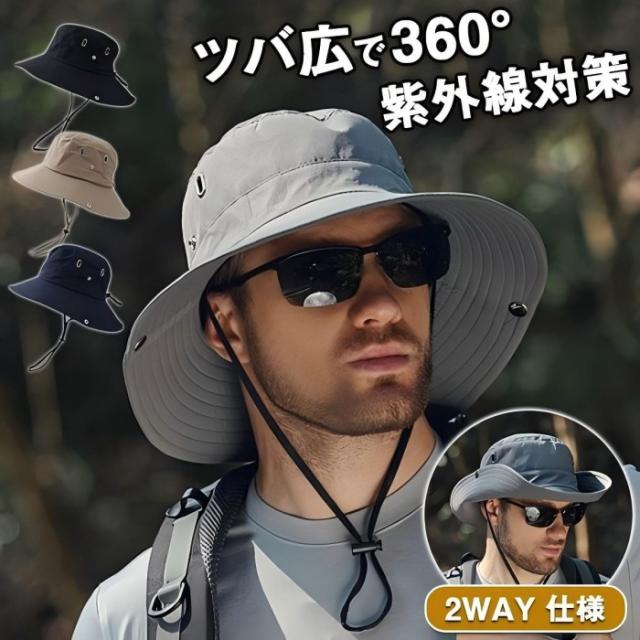 送料無料 帽子 メンズ サファリハット ハット つば広 夏 UV対策 蒸れない 持ち運び アウトドア キャンプ 日よけ あご紐 山 お釣り 日焼け止 紫外線対策