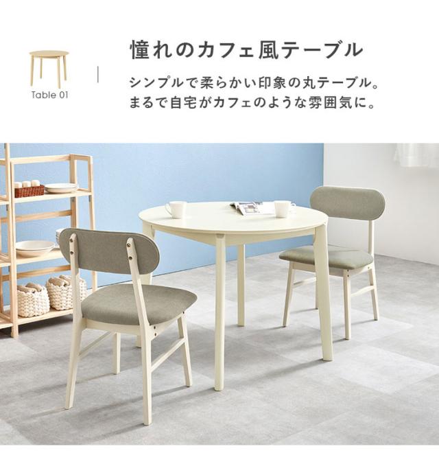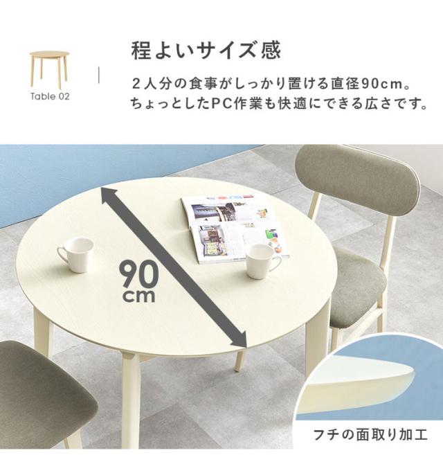 丸いフォルムが可愛いダイニングセット。食事や作業でも使いやすいサイズ感です。