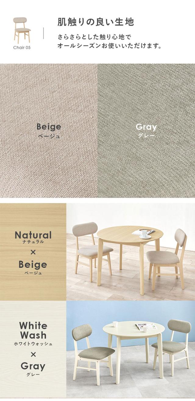 主材:ラバーウッド、天板:化粧繊維板、張地:ポリエステル