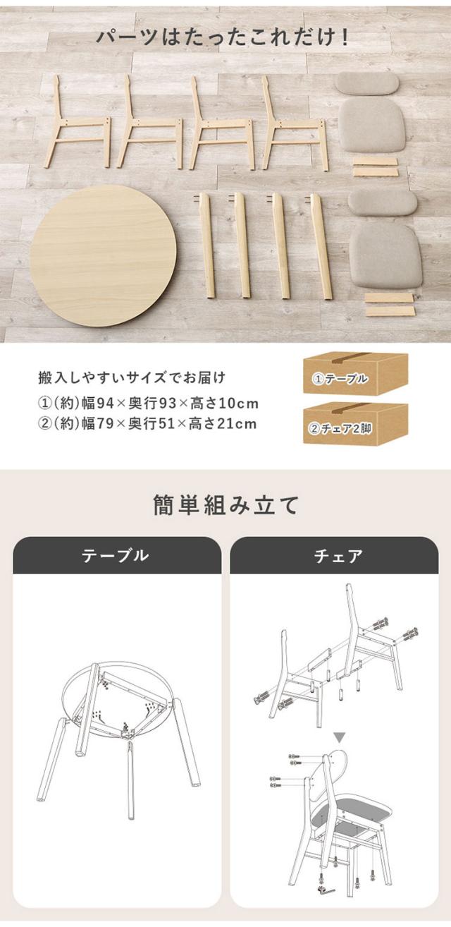 円形 ダイニング3点セット 幅90 丸 ダイニングテーブル ダイニングチェア 天然木 簡単組立 椅子 イス チェア コンパクト 背もたれ シンプル 北欧 チェア(代引不可)【送料無料】