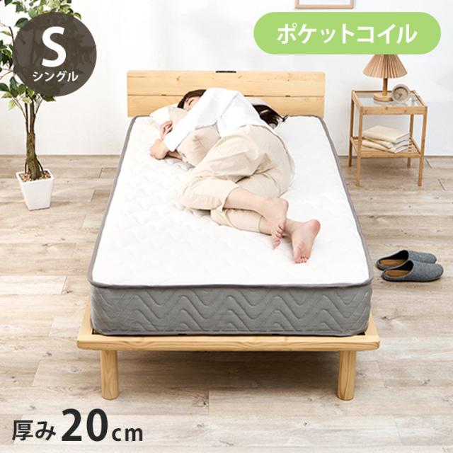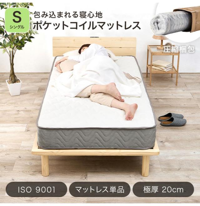 ポケットコイルマットレス S シングル 幅97cm 厚み20cm マットレス ポケットコイル マット 敷布団 寝具 寝具インテリア おしゃれ 北欧(代引不可)【送料無料】