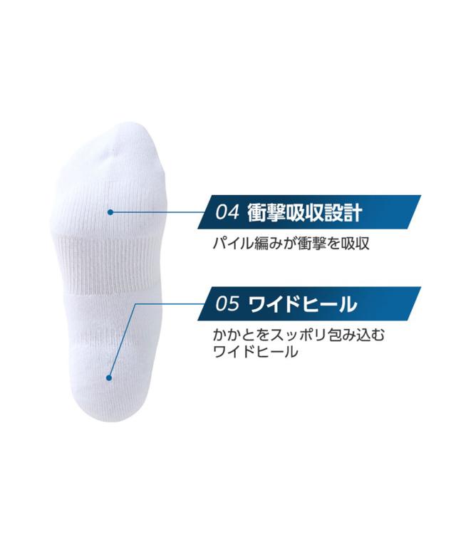 足裏アーチサポート機能&パイル編みによる衝撃吸収設計で運動時の負担を軽減。