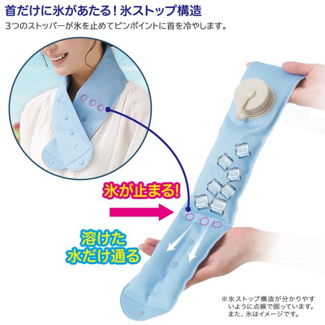 3つのストッパーが氷を首元にしっかり固定し、太い血管を効果的に冷やします。