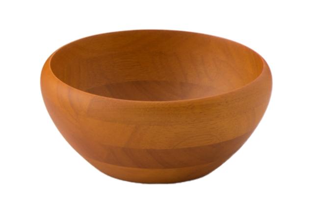 丸く、底が平らな形状の木製サラダボウル