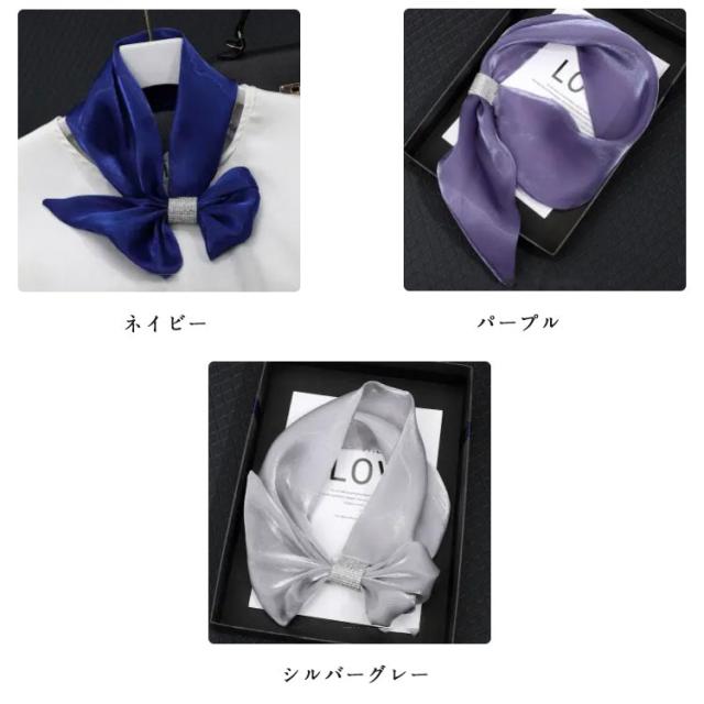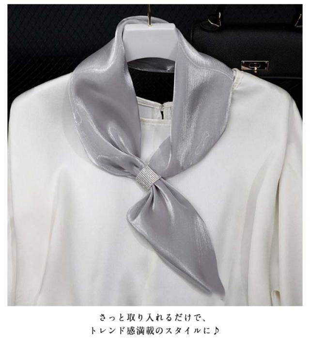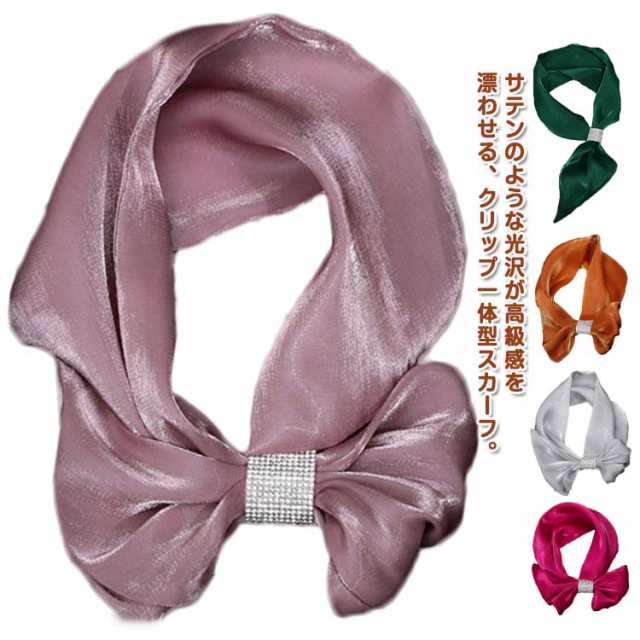 スカーフ留めつき クリップ一体型スカーフ ストール フラワー ネックスカーフ リボン ストール ふんわり キラキラ 首元華やか 透け感 ネックウォーマー ネックストール ネックガード 紫外線対策 無地 きれいめ おしゃれ