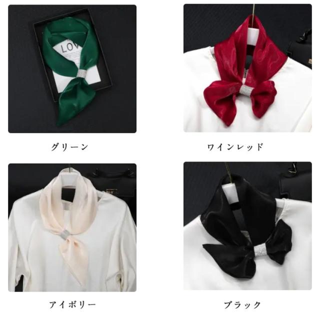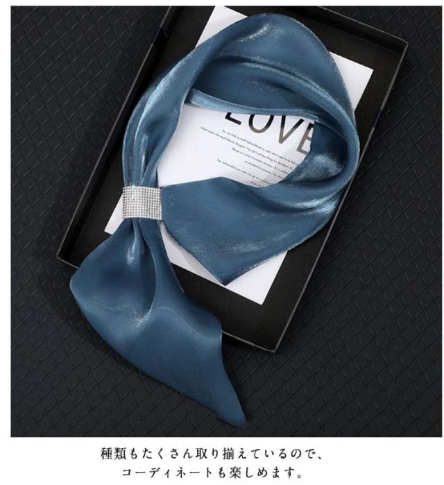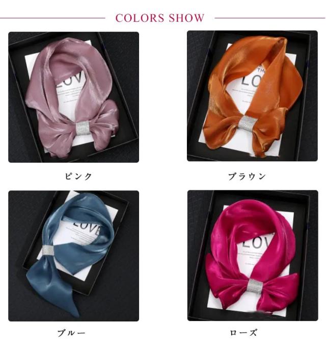 | サテンのような光沢が高級感を漂わせる、クリップ一体型スカーフ。 細身タイプのスカーフが使いやすく、頭・首元・手首・腰・バッグなど、様々な用途にアクセサリー感覚でアレンジ可能。 種類もたくさん取り揃えているので、コーディネートも楽しめます。 さっと取り入れるだけで、トレンド感満載のスタイルに♪ | |