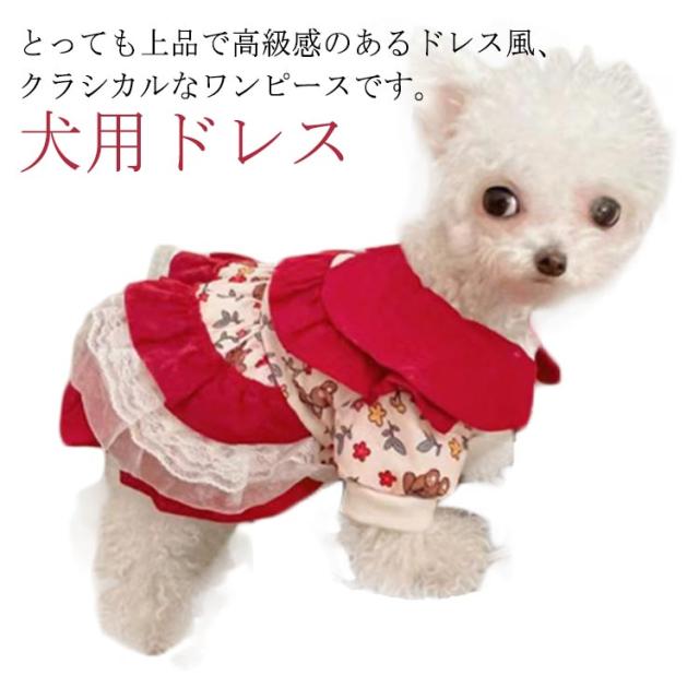 犬服 ワンピース ドッグウェア 犬用ドレス ペットウェア洋服 上品 パーティードレス 薄手 ワンちゃん スカート ロリータスタイル 制服 レース キラキラ 結婚式 お祝い 記念パーティー 可愛い 大人 春夏秋 オシャレ