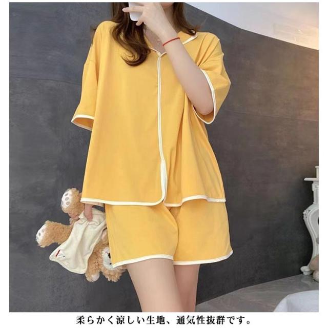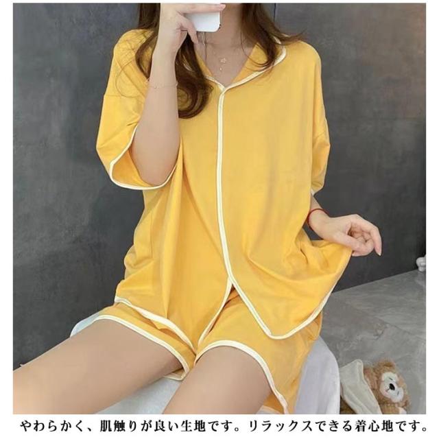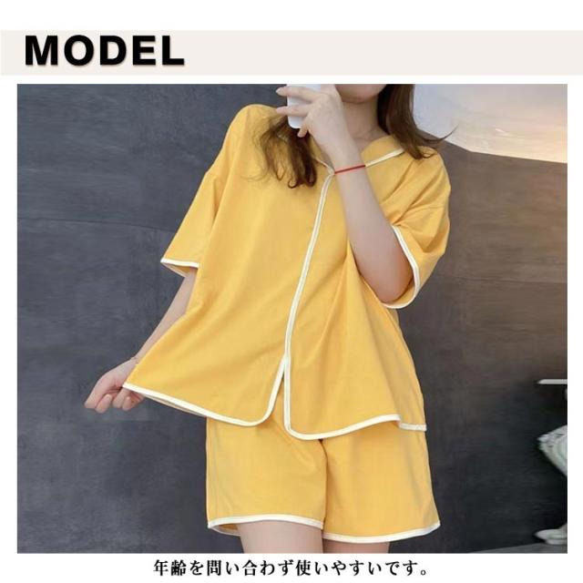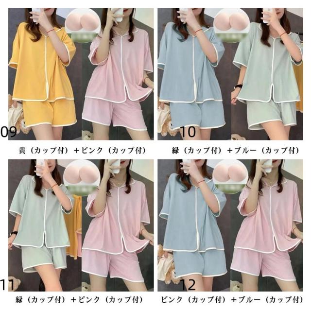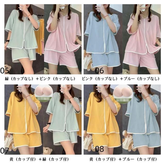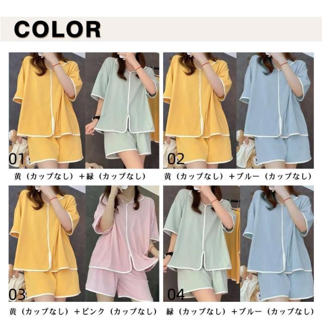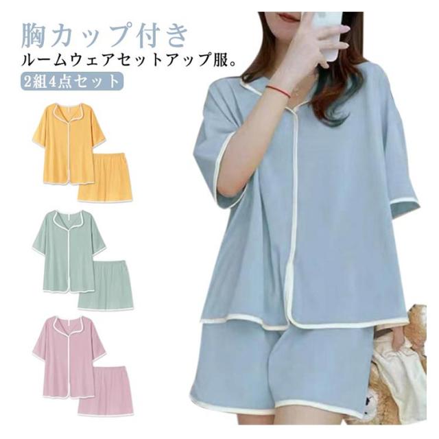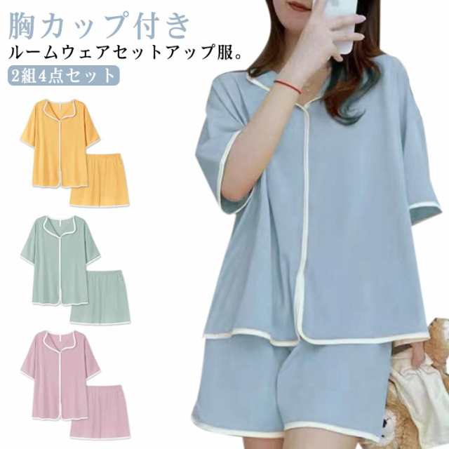 可愛い カップ付き カップ付きtシャツ 半袖tシャツ ショートパンツ レディース 夏用 2組4点セット セットアップ 無地 前開き 上下セット ルームウェア パッド付き 寝間着 パジャマ 寝巻き ナイトウェア シンプル ゆったり 大きいサイズ 部屋着 リラックス
