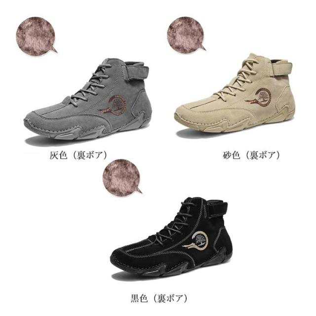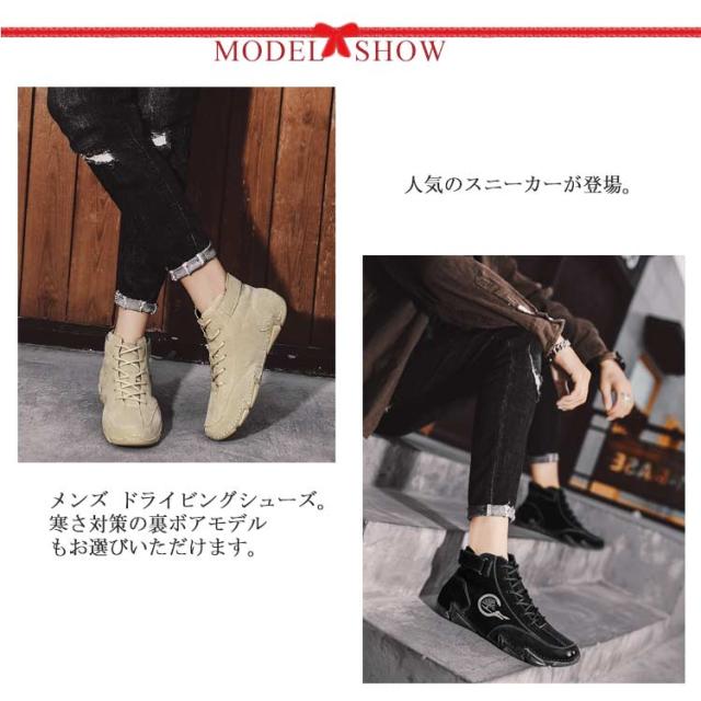 メンズ ドライビングシューズ ハイカット スニーカー モカシン ラージサイズ カジュアル アウトドア 歩きやすい 疲れにくい シンプル メンズシューズ 革靴 スリッポン 軽量 柔らかい ベルクロ 春 夏 秋 冬 裏ボア 裏起毛 大きいサイズ 23-29cm