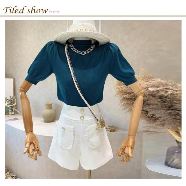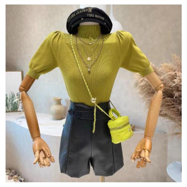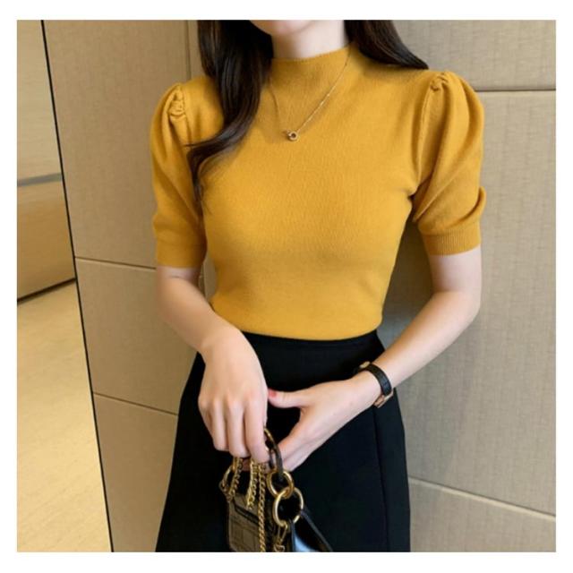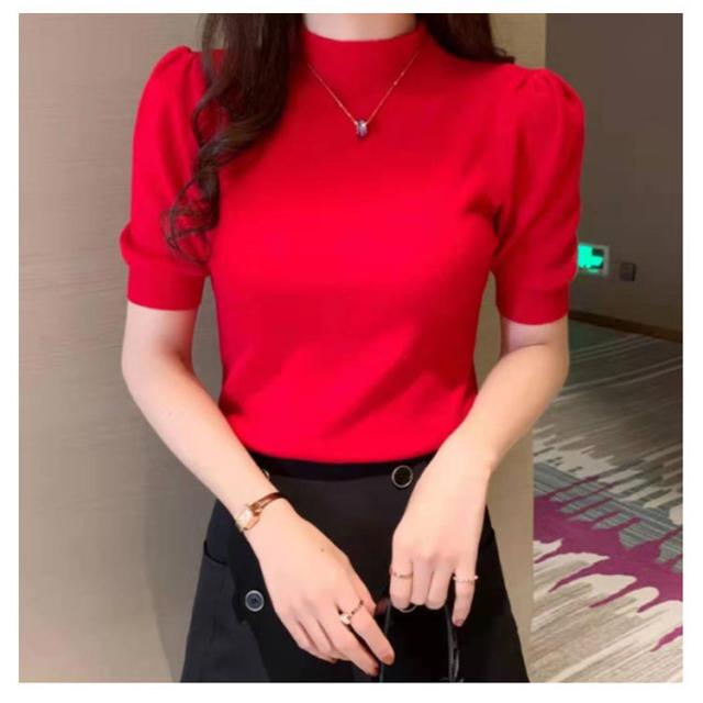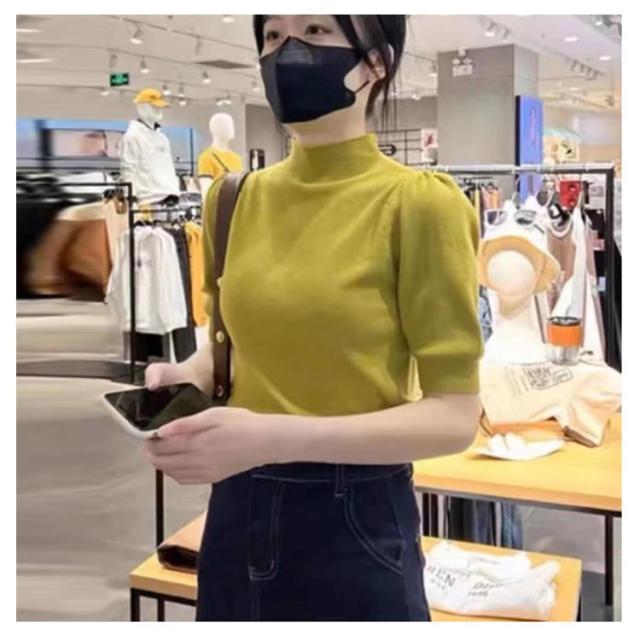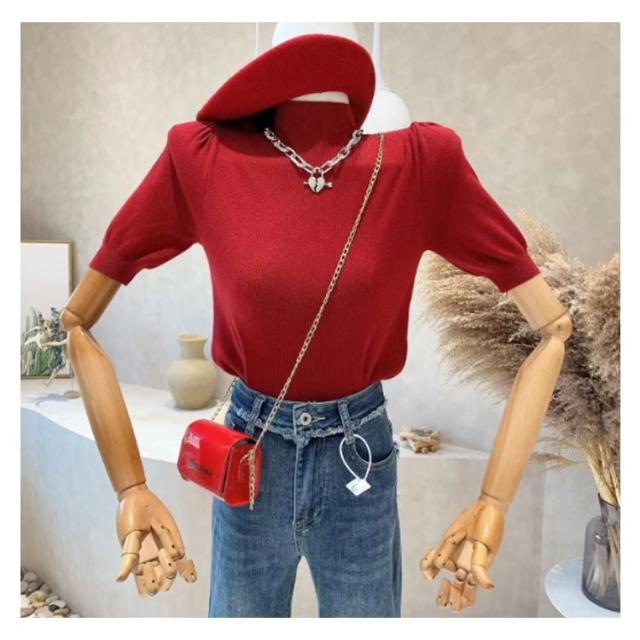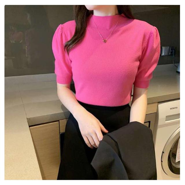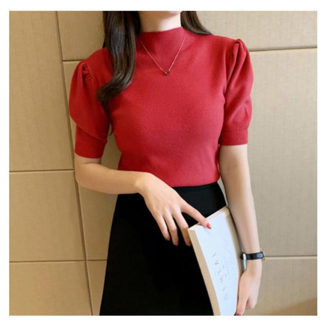 ハイネック サマーニット Tシャツ シンプル 半袖 レディース セーター トップス リブニット 5分袖ニット 半袖ニット タートル 上品 ニット オフィスカジュアル 無地 五分袖 きれいめ 春 可愛い 大人 ニット 夏 秋 韓国ファッション 20代 30代 40代