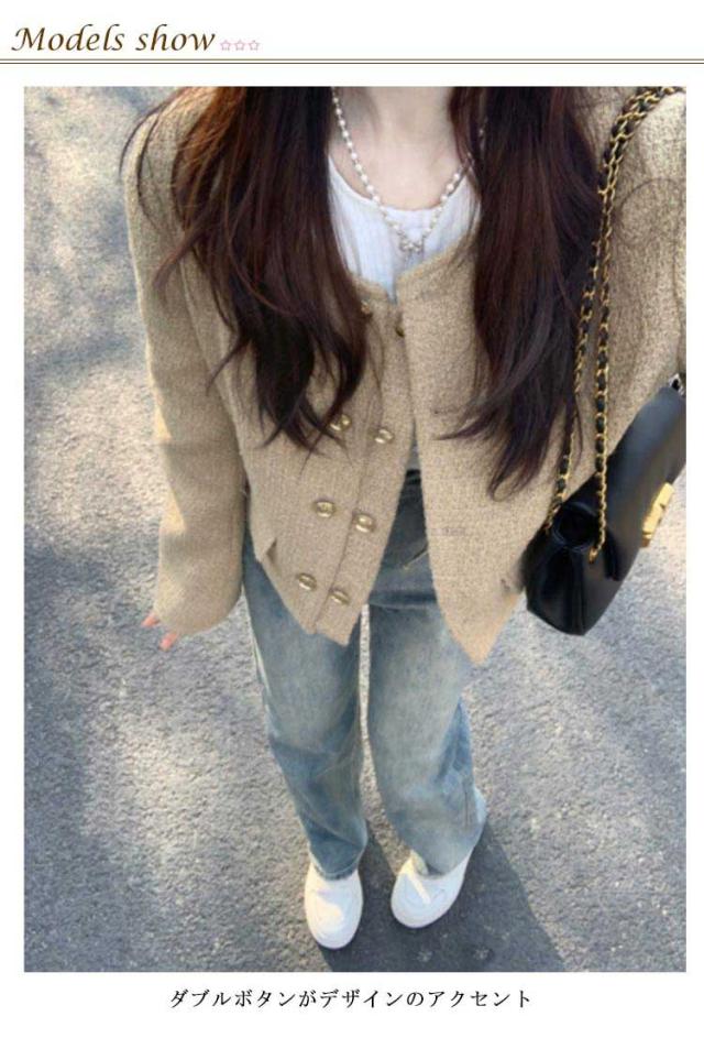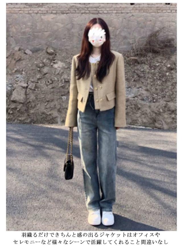ツイードフリンジノーカラージャケット レディース 秋 冬 長袖 ライトアウター ジャケット ショート ジャケット 秋 冬 秋冬 ノーカラージャケット ツイードジャケット レディース ショート丈 セレモニー オケージョン ツイード ラメ 高見え