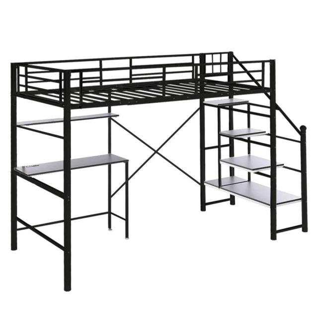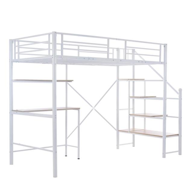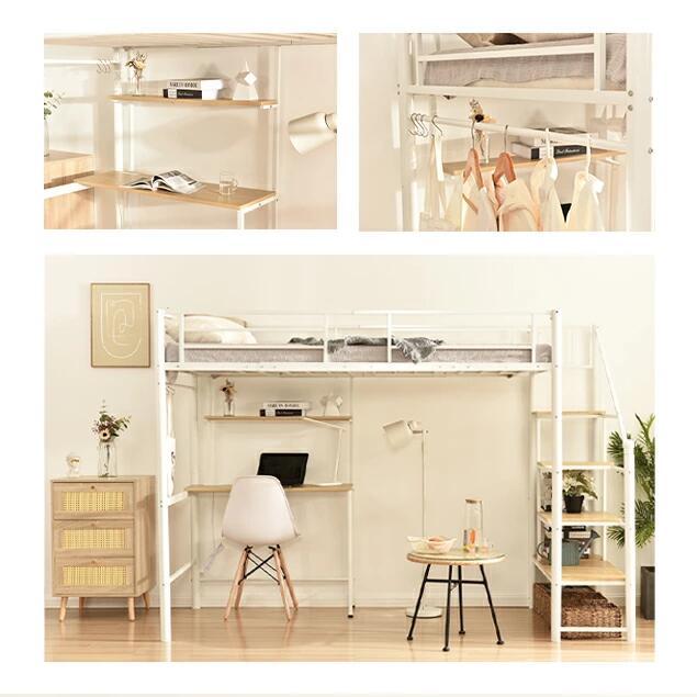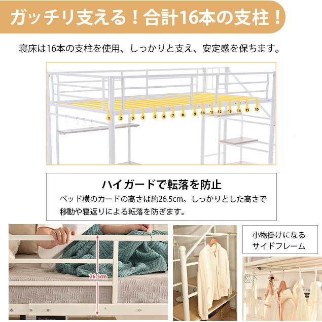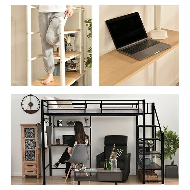 ロフトベッド パイプベッド シングルベッド デスク付き 耐震ベッド 収納棚 階段付き 収納フック 子供ベッド 二段ベッド 子供部屋 パイプ 金属 大人 一人暮らし 北欧風 新生活