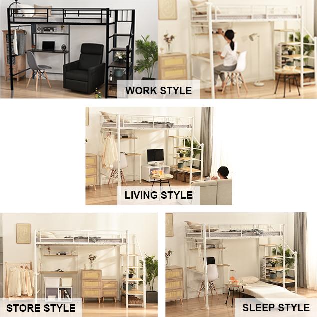 【様々なシーンで活用できるロフトベッド】 アイディア次第でいろいろな使い方可能。勉強スタイル、仕事スタイル、リビングスタイル、全部楽しめます!