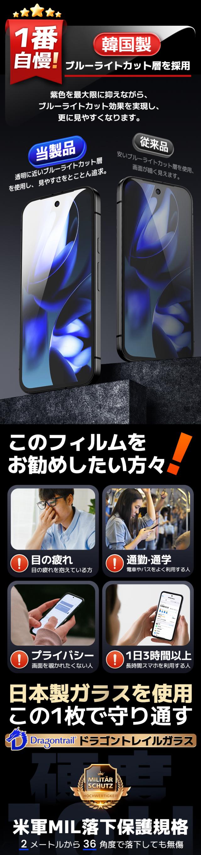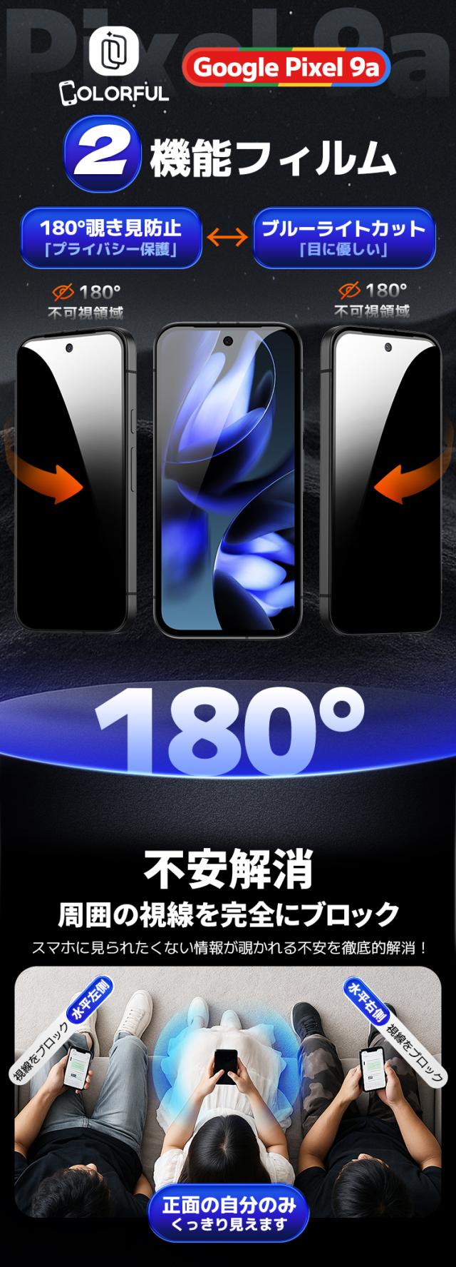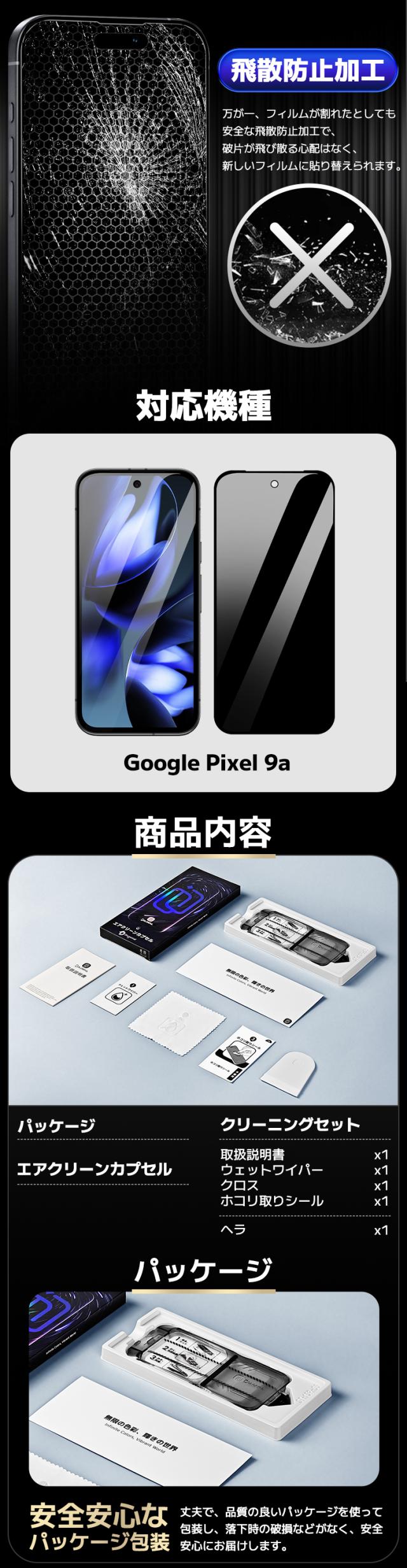 【 ブルーライトカット + 覗き見防止 】 Google Pixel9a 覗き見防止 ガラスフィルム グーグル Pixel 9a フィルム Google Pixel9a 除き見防止 保護フィルム 液晶フィルム プライバシー 保護 日本製旭硝子 米軍MIL規格 日本製旭硝子 硬度10H