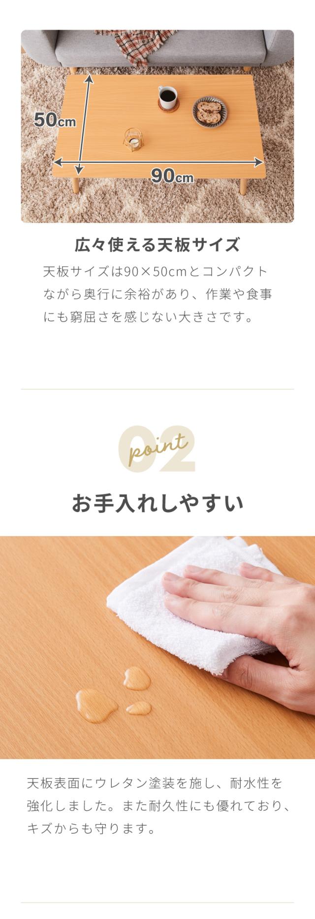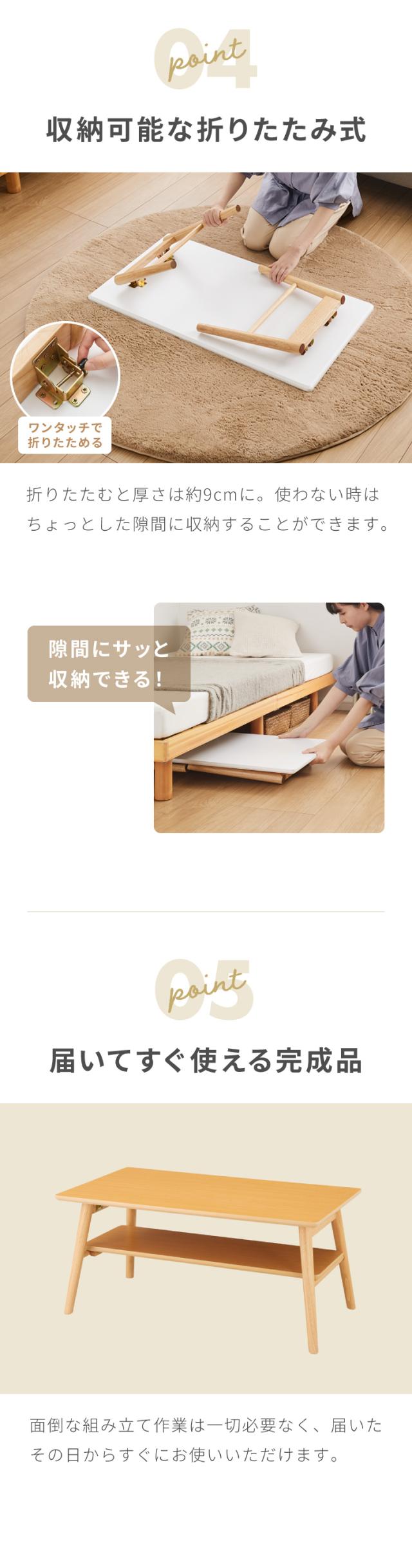 折りたたみ 棚付きセンターテーブル 90×50cm