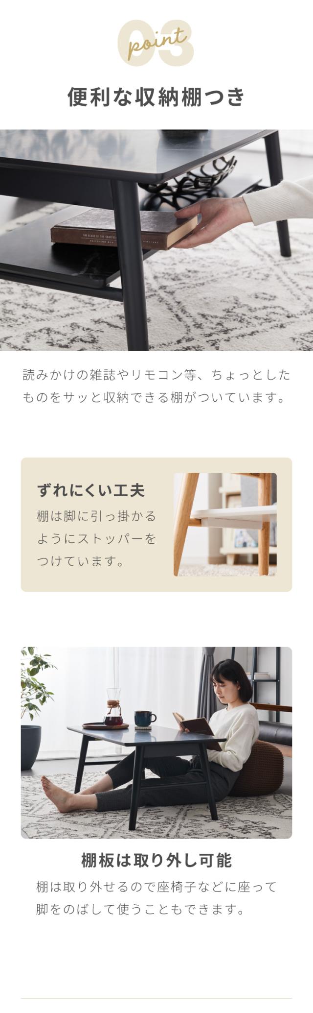 折りたたみ 棚付き センターテーブル 90×50cm ローテーブル おしゃれ 北欧 シンプル ナチュラル センターテーブル ソファテーブル テーブル 大理石 石目調 机 折り畳み 収納付き 天然木 完成品 木製【送料無料】