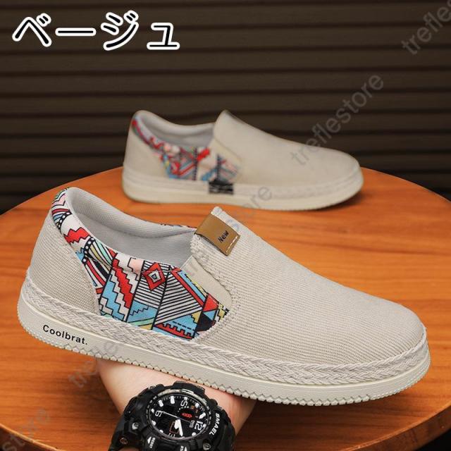 【ポイント5倍!】キャンバススニーカー 厚底 レース メンズ 通気性抜群 夏 靴 花柄 シークレットシューズ スリッポン 疲れない カジュアル 厚底靴 紐なし 大きいサイズ