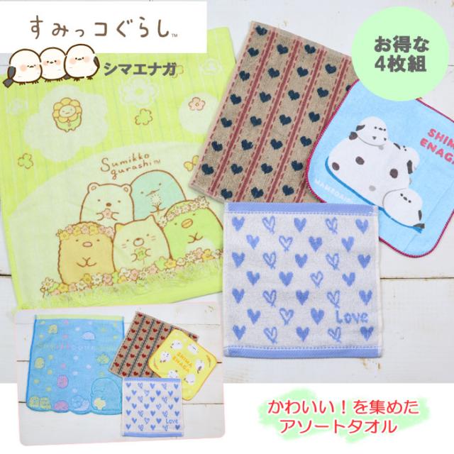 すみっコぐらし シマエナガ タオルハンカチ ハンドタオル 4枚組 キャラクター 小学生 女子 女の子 手拭き 汗拭き ハート ab-589200
