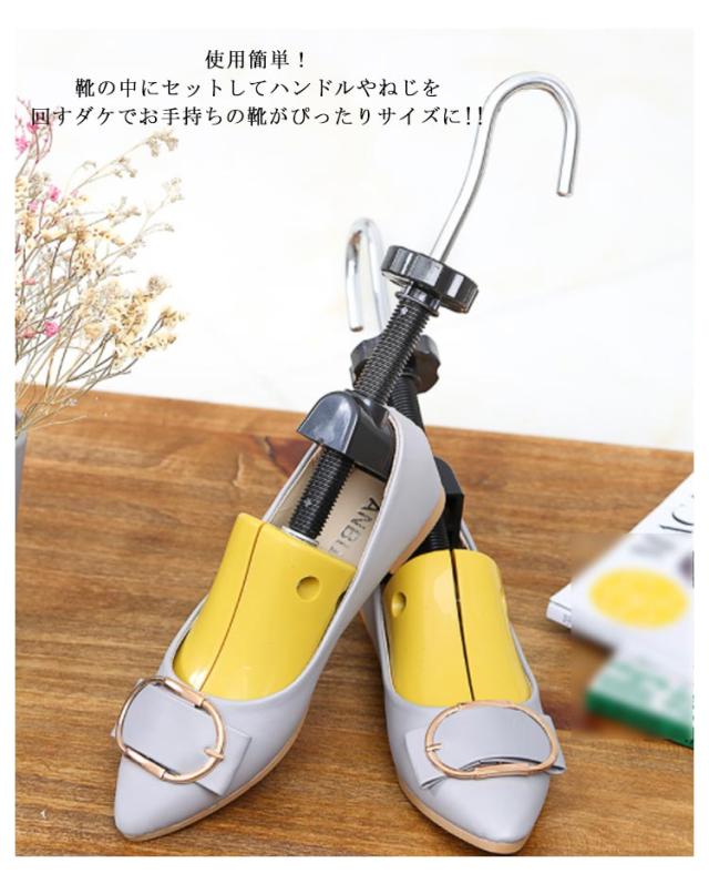 | パンプスやスニーカー、ハイヒール、革靴などにピッタリ万能シューキーパー。 使用簡単!靴の中にセットしてハンドルやねじを回すダケでお手持ちの靴がぴったりサイズに!! 毎日履いている大切なシューズをより良い状態で保つことはもちろん、靴好きな方へのプレゼントとしてもオススメです。 | |