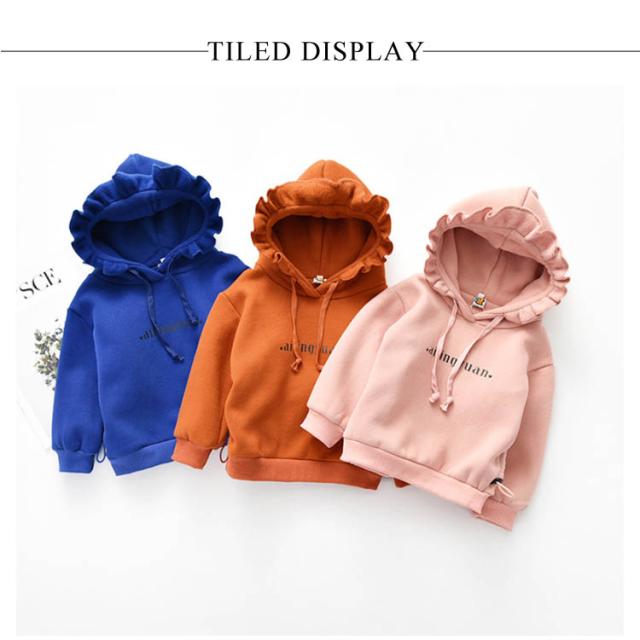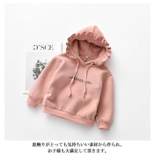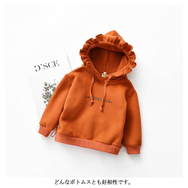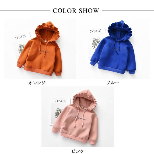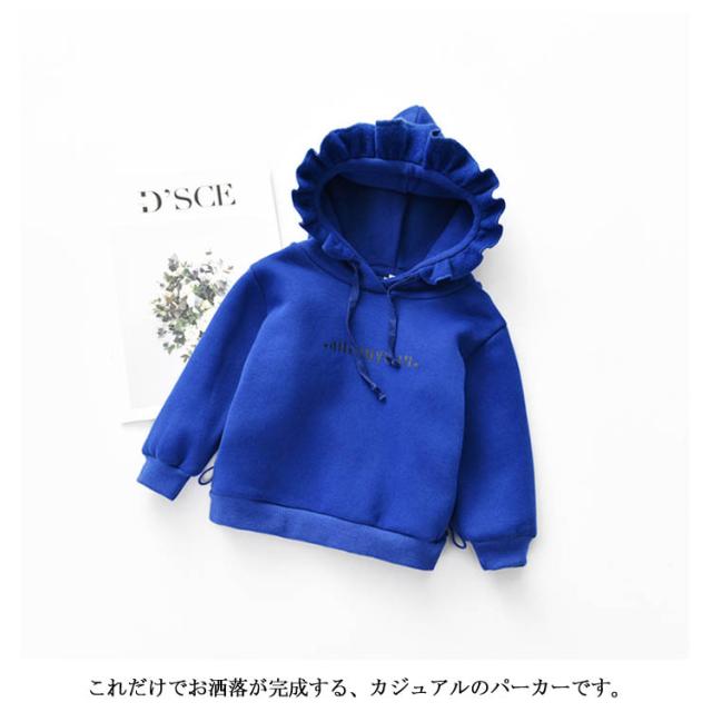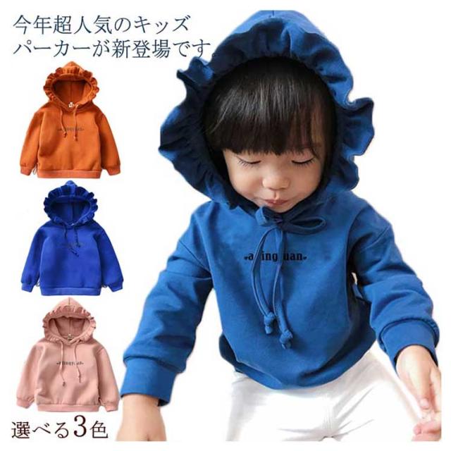 子供服 パーカー フード付き トレーナー 女の子 無地 トップス プルオーバー 長袖 フリル 可愛い シンプルト 韓国風 キッズ服 ゆったり 運動 人気 普段着 防風 防寒服 誕生日 アウトドア トップス 新作 90 100 110 120
