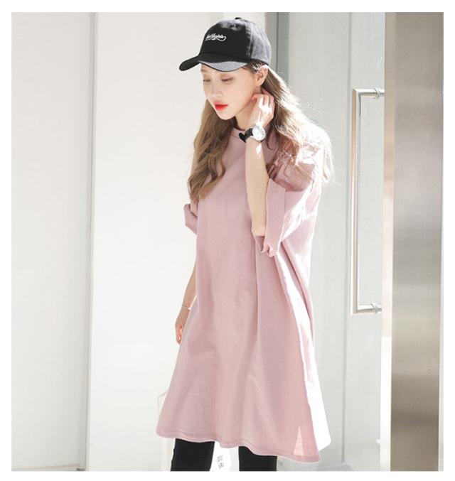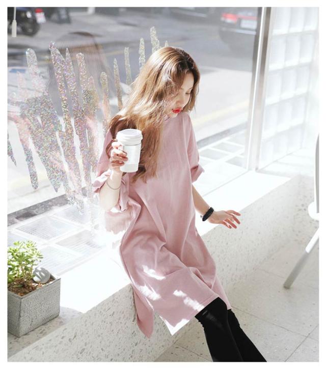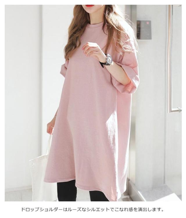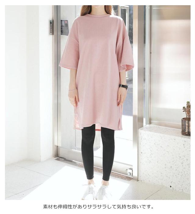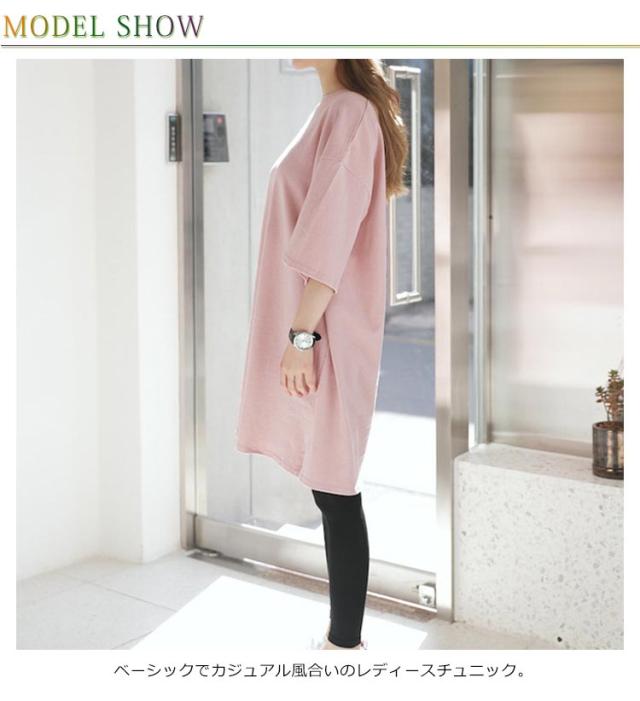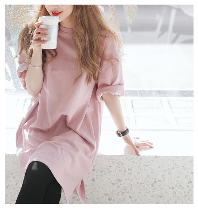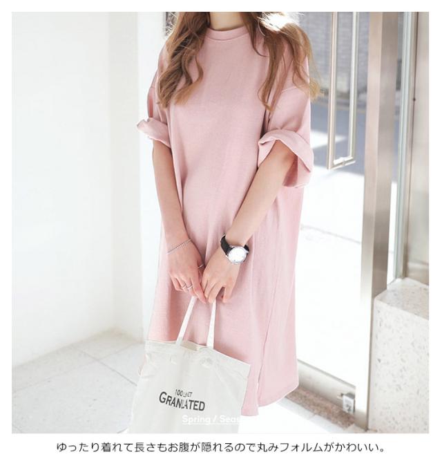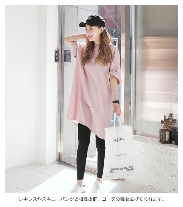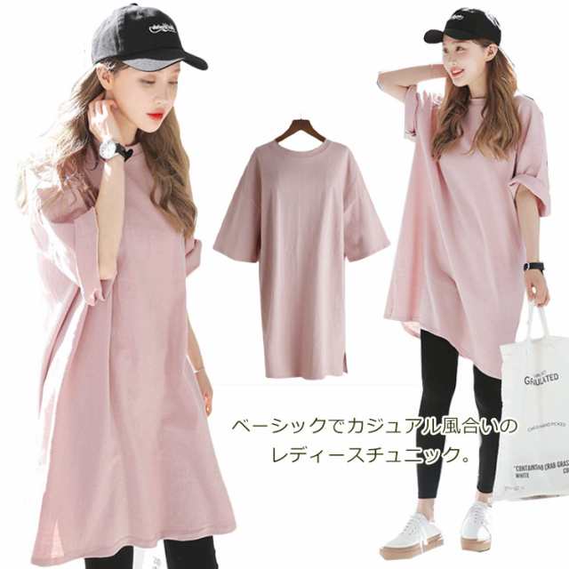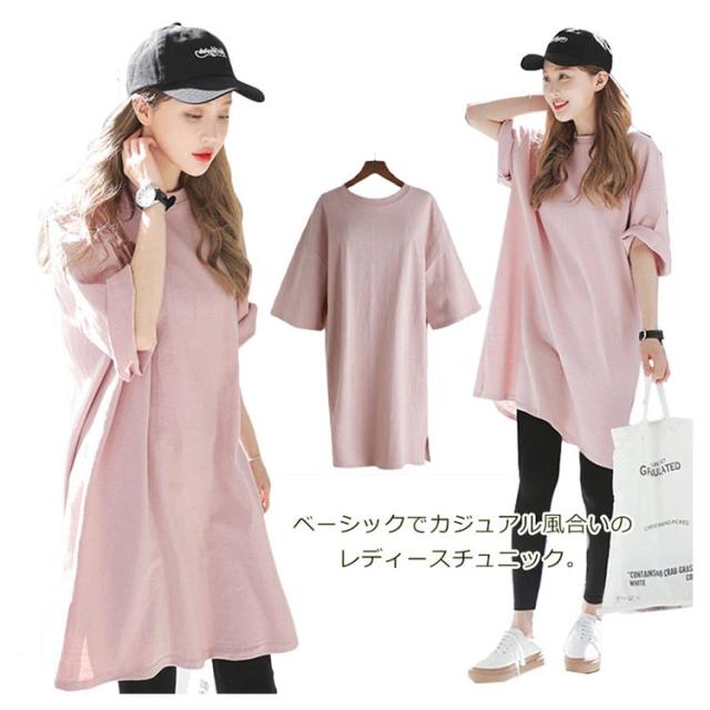 【送料無料】カットソー ワンピース オーバーサイズ ロング丈 半袖 tシャツ チュニック レディース サイドスリット トップス ロングTシャツ ゆったり 体型カバー 韓国ファッション 無地 春夏