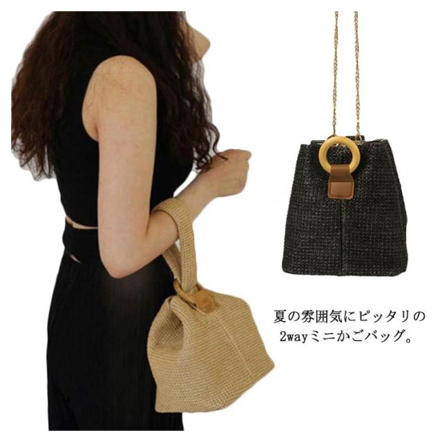 かごバッグ ハンドバッグ ショルダー 2way かご バッグ カバン 春 夏 レディース 編み バッグ 斜めがけ ポシェット ミニバッグ ショルダーバック 春夏 斜め掛け 手提げ 大容量 軽量 韓国ファッション バッグ レディース