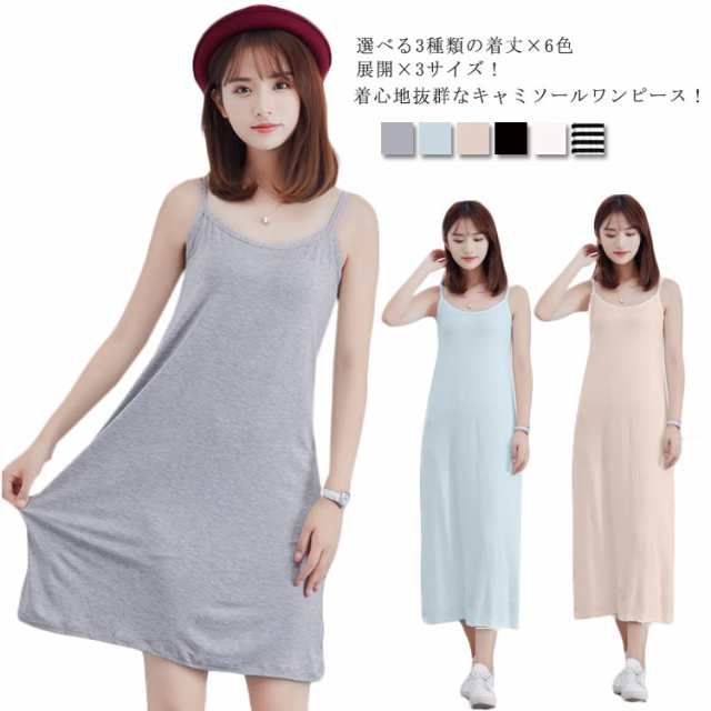 選べる3種類の着丈*6色展開*3サイズ!キャミソールワンピース レディース キャミワンピ ペチコート インナーワンピース キャミソール インナー ワンピース ルームウエア 送料無料 部屋着 膝丈 ミモレ丈 ロング丈 モダール 無地 透けない カジュアル 透け防止 大きいサイズ