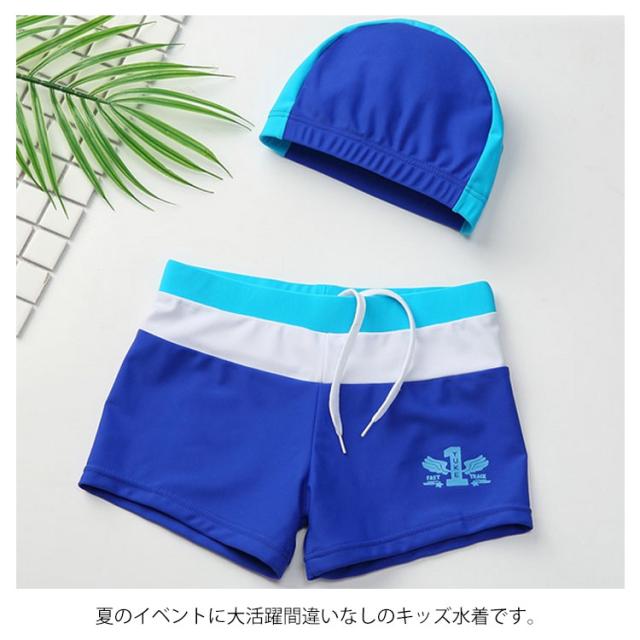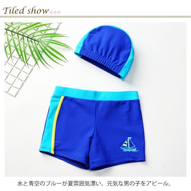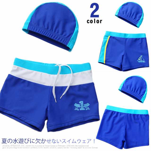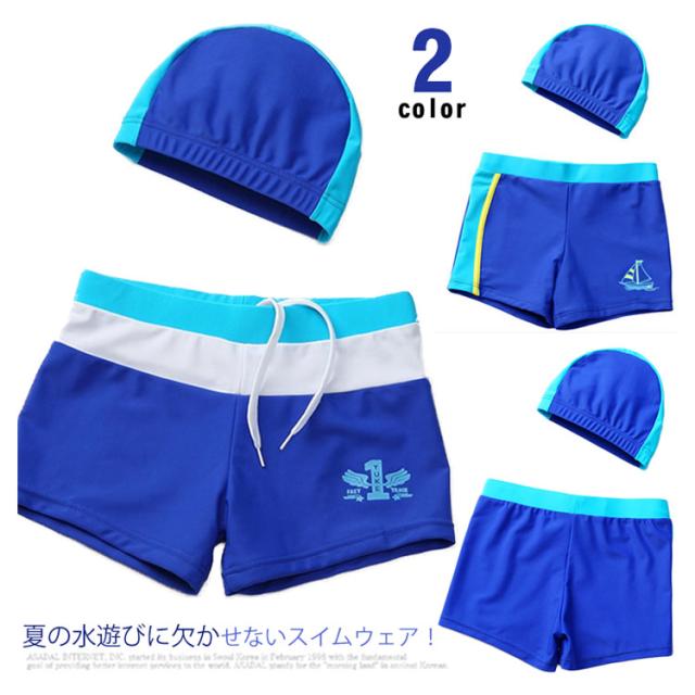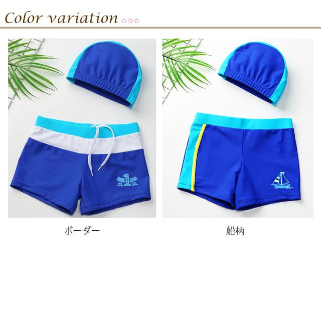 送料無料 スイムウェア 男の子 水着 サーフパンツ スイムキャップ ビーチ 2点セット キッズ 子供用 スイミング 子ども 海パン 水泳用品 子供