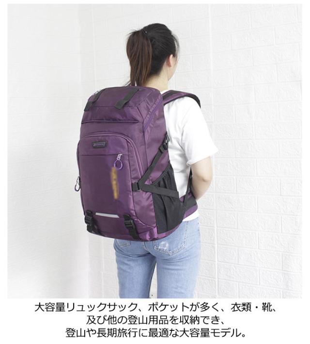 | 撥水、防汚加工の大容量登山リュックが登場! 大容量!荷物がすっぽり収まるから登山だけじゃなく防災用・キャンプ・ 旅行・合宿など使い道広がる! 人体工学に基づいたデザインで背負いやすく、 身体への負担を軽減します。 大容量リュックサック、ポケットが多く、衣類・靴、及び他の登山用品を収納でき、登山や長期旅行に最適な大容量モデル。 アウトドアや登山、旅行用だけでなく、通勤通学などにも使える大容量リュックです! | |