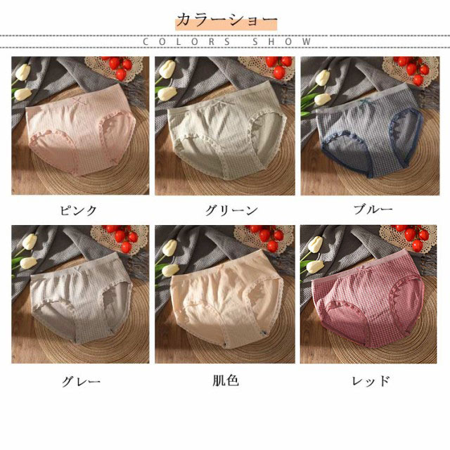 | 全6色!柔らかな肌触りで吸湿性があり優しい履き心地のチェック柄ショーツ。 通気性 が良く 蒸れない デリケート肌、乾燥肌、肌荒れの方でも快適な着心地で人気です。 クロッチ部分には抗菌加工あて布が付いています。 楽な履き心地で締め付けがなく、おしりすっぽり、無地で普段使いに最適。 大人っぽい落ち着いたカラー展開でアウターに響きにくい(ショーツラインが出にくい)、ずれにくい、食い込まない。 特に20代、30代、40代の方にお勧めです。 | |