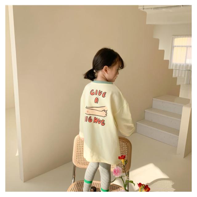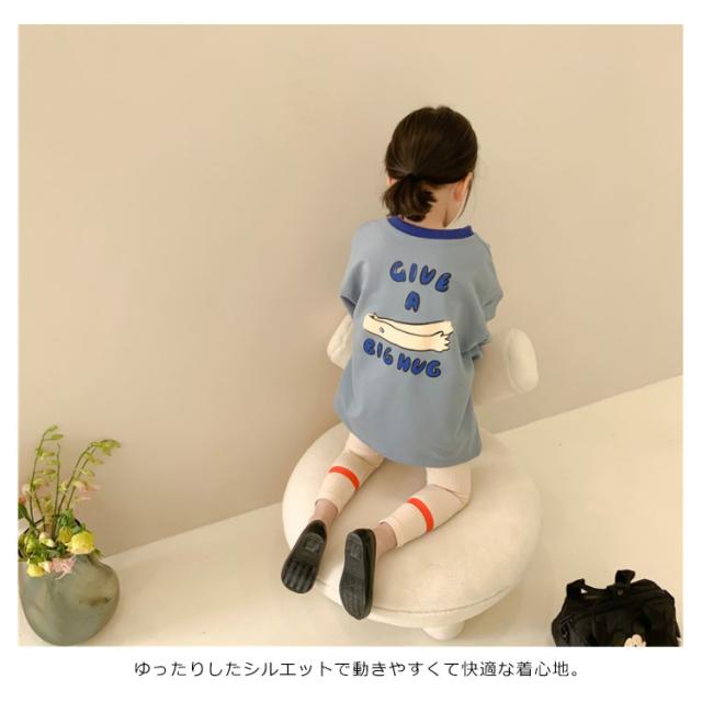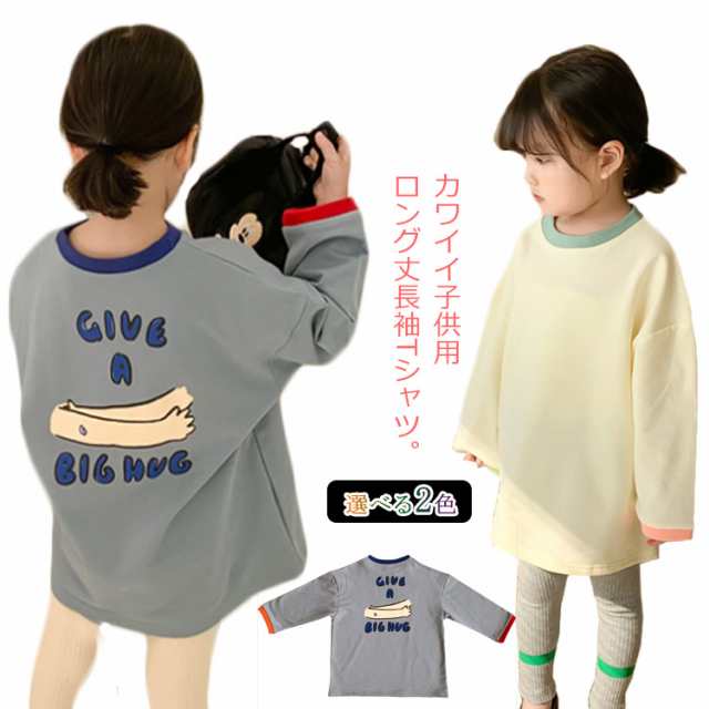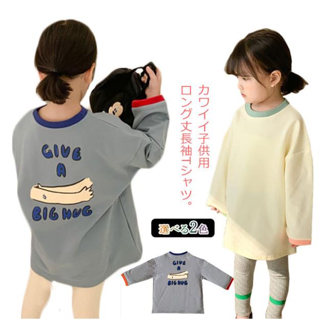 送料無料 Tシャツ キッズ カットソー 女の子 ワンピース ベビー トップス ロンT 子供服 ロング丈tシャツ 長袖tシャツ ゆったり カジュアル プリント 可愛い 春秋