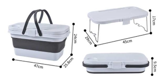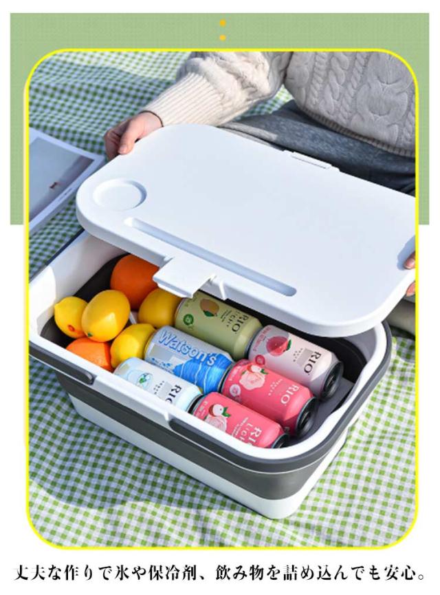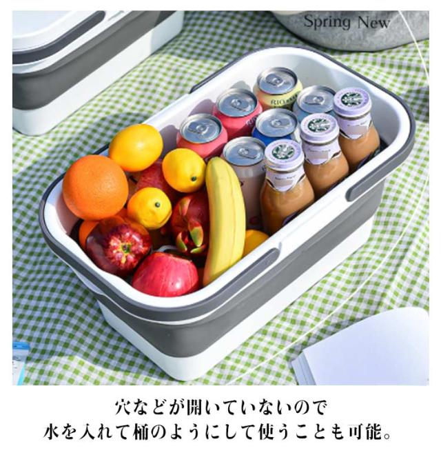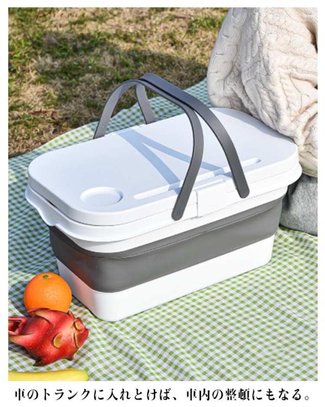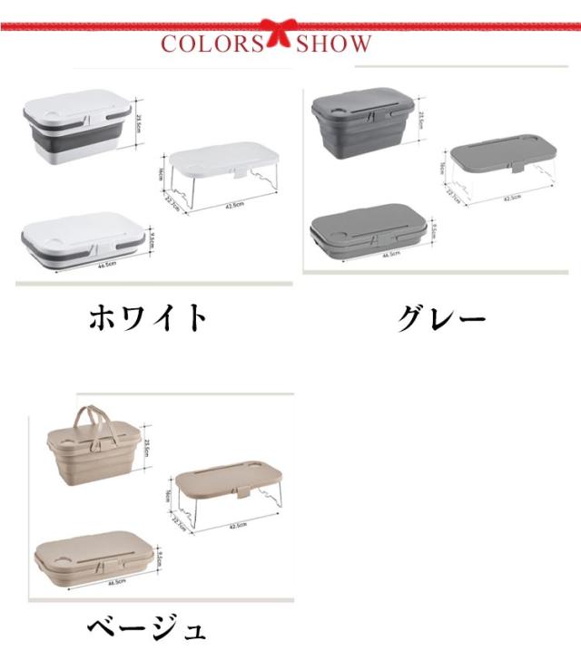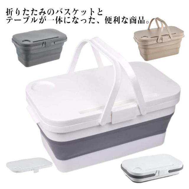 | 折りたたみのバスケットとテーブルが一体になった、便利な商品。 穴などが開いていないので水を入れて桶のようにして使うことも可能。 丈夫な作りで氷や保冷剤、飲み物を詰め込んでも安心。 普通のバスケットより、カビなどの配慮がいらない。 車のトランクに入れとけば、車内の整頓にもなる。 使わないとき、折り畳んで、ちょっとした隙間に立ててしまえるのでとても便利。 キャンプ、バーベキュー、アウトドア用、防災用にもおすすめです。 | |