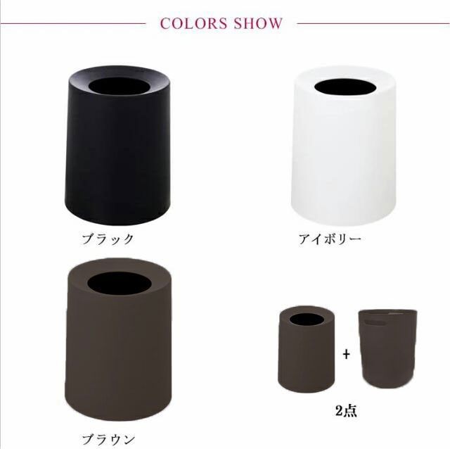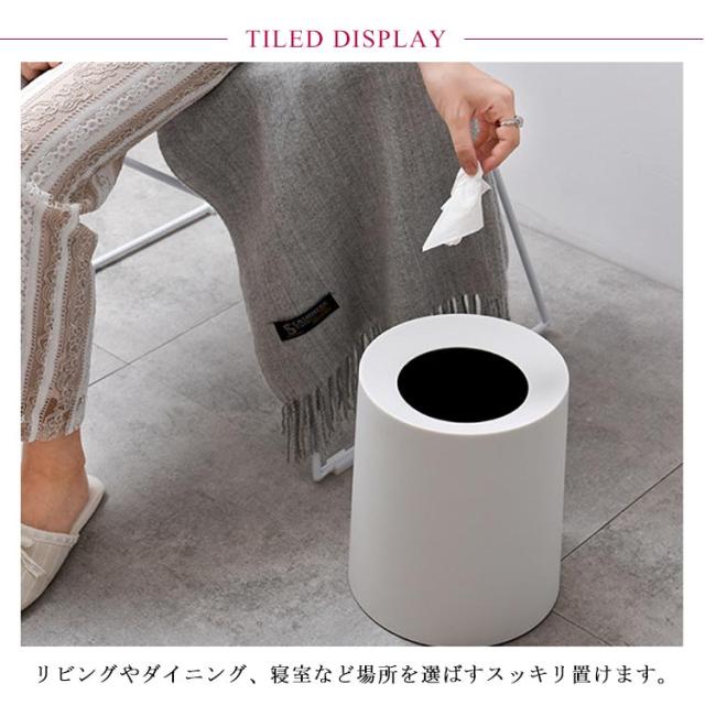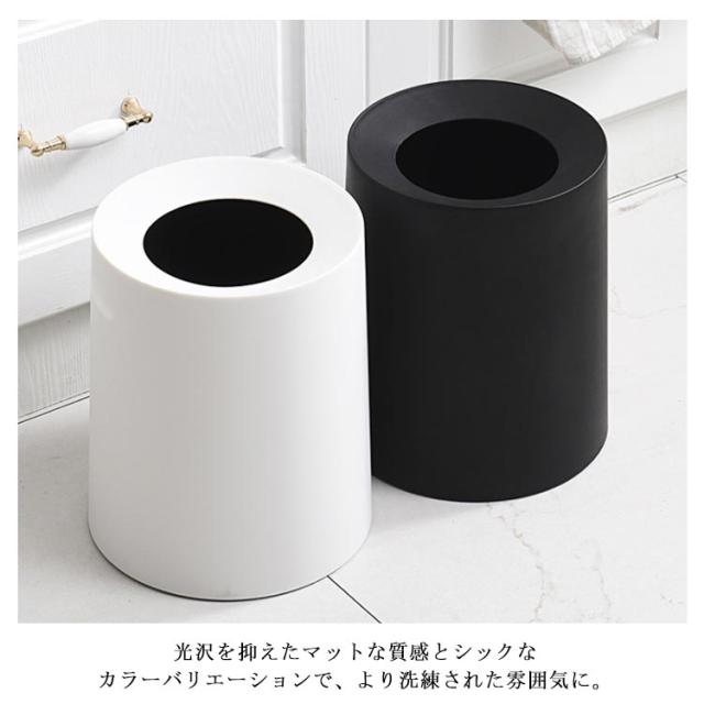 | ゴミ袋を隠して生活感を抑えるゴミ箱 光沢を抑えたマットな質感とシックなカラーバリエーションで、より洗練された雰囲気に。 もはやゴミ箱ではなくインテリアの一つとして置きたくなるデザインも秘密。 どんなお部屋にもなじみやすく、空間をスタイリッシュに彩ります。 ゴミ箱にカバーを被せてビニール袋を見せない構造にすることで、ゴミ箱の汚れを気にすることなくすっきりとした印象に 口の部分は傾斜でゴミを捨てやすい形に、中が見えにくいのも嬉しい。 リビングやダイニング、寝室など場所を選ばすスッキリ置けます。 | |