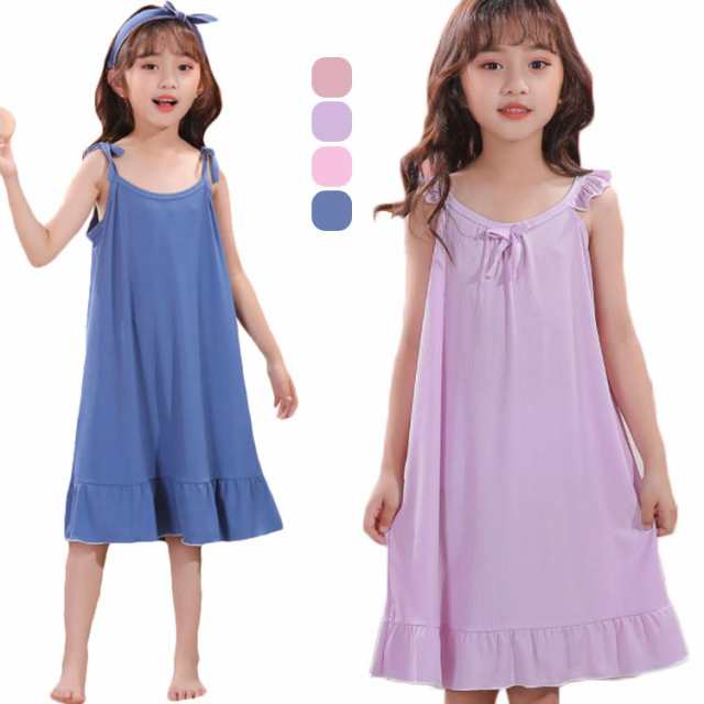 パジャマ キッズ 女の子 ノースリーブ 子供パジャマ ルームウェア ワンピース 夏 ワンピース 女の子 部屋着 かわいい ゆったり おしゃれ 可愛い 寝巻き 送料無料 無地 リボン フレアワンピ ロングワンピース
