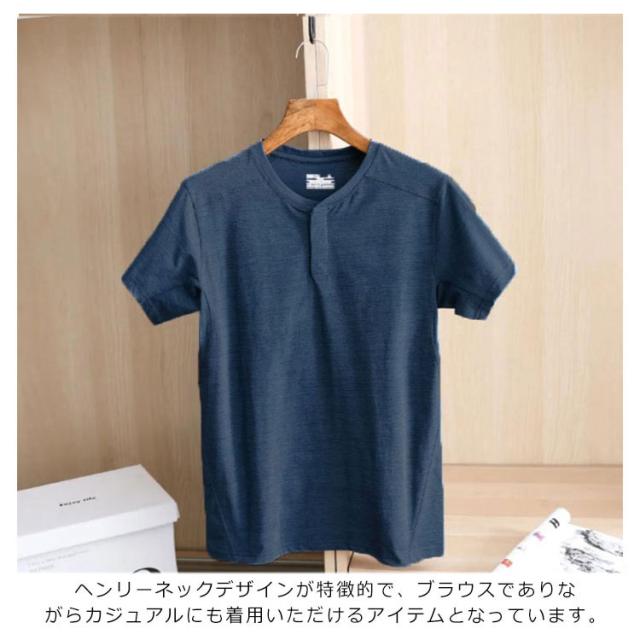 | ひんやりとした冷感のある生地感でこの夏のピッタリ。 ヘンリーネックデザインが特徴的で、ブラウスでありながらカジュアルにも着用いただけるアイテムとなっています。 吸汗速乾性に優れ,暑い夏でも気持ちよく着られる。 おしゃれだけではなく、紫外線強い場所でもしっかり肌を守る機能性に優れたアイテムです。 ショートパンツと合わせても、ラフになりすぎず品のあるコーディネートに。 | |