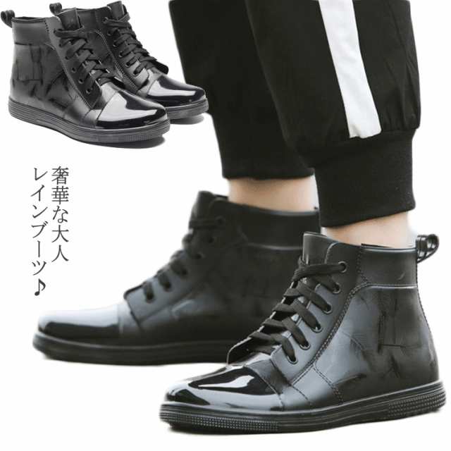 レインブーツ 長靴 ショートブーツ メンズ オシャレ レースアップ ショートブーツ レインシューズ 羽柄 雨靴 くつ 雨対策 梅雨 防水 メンズ 通勤 通学 アウトドア ガーデニング レースアップ 雨晴兼用 高校生 大学生送料無料